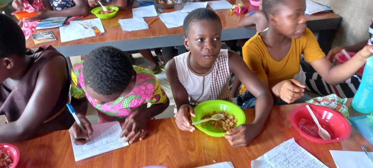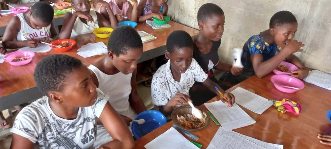 A lesson is taking place before lunch.
