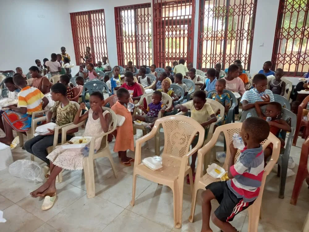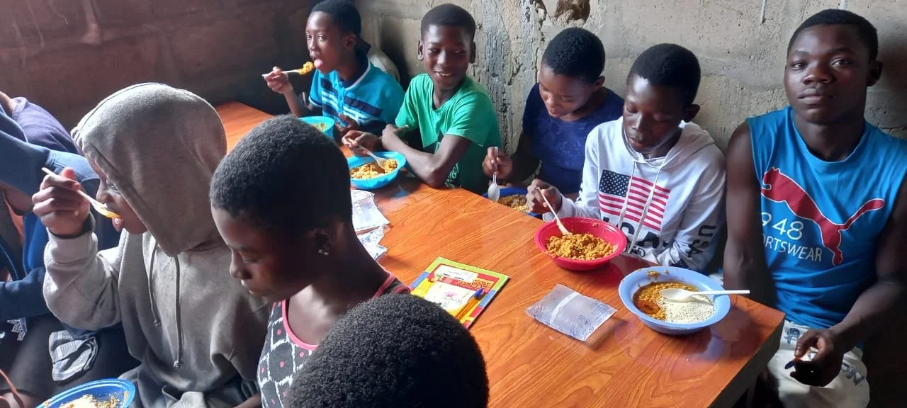 The kids are enjoying the meal!