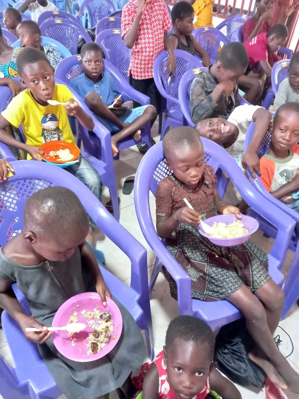 The kids are patiently waiting for lunch.